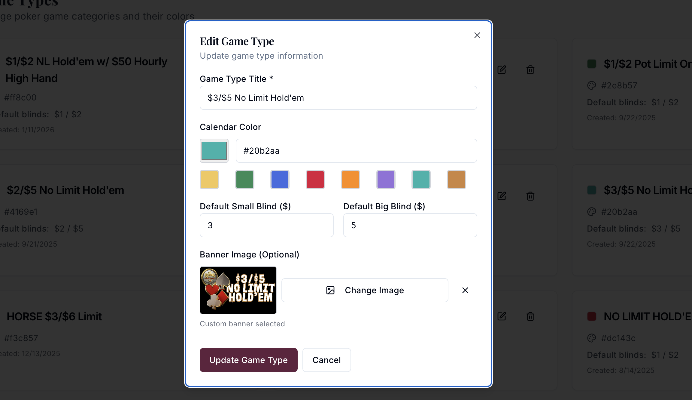 Setup all of your game types with custom thumbnails for all of your cash games for repeatability and consistency.
