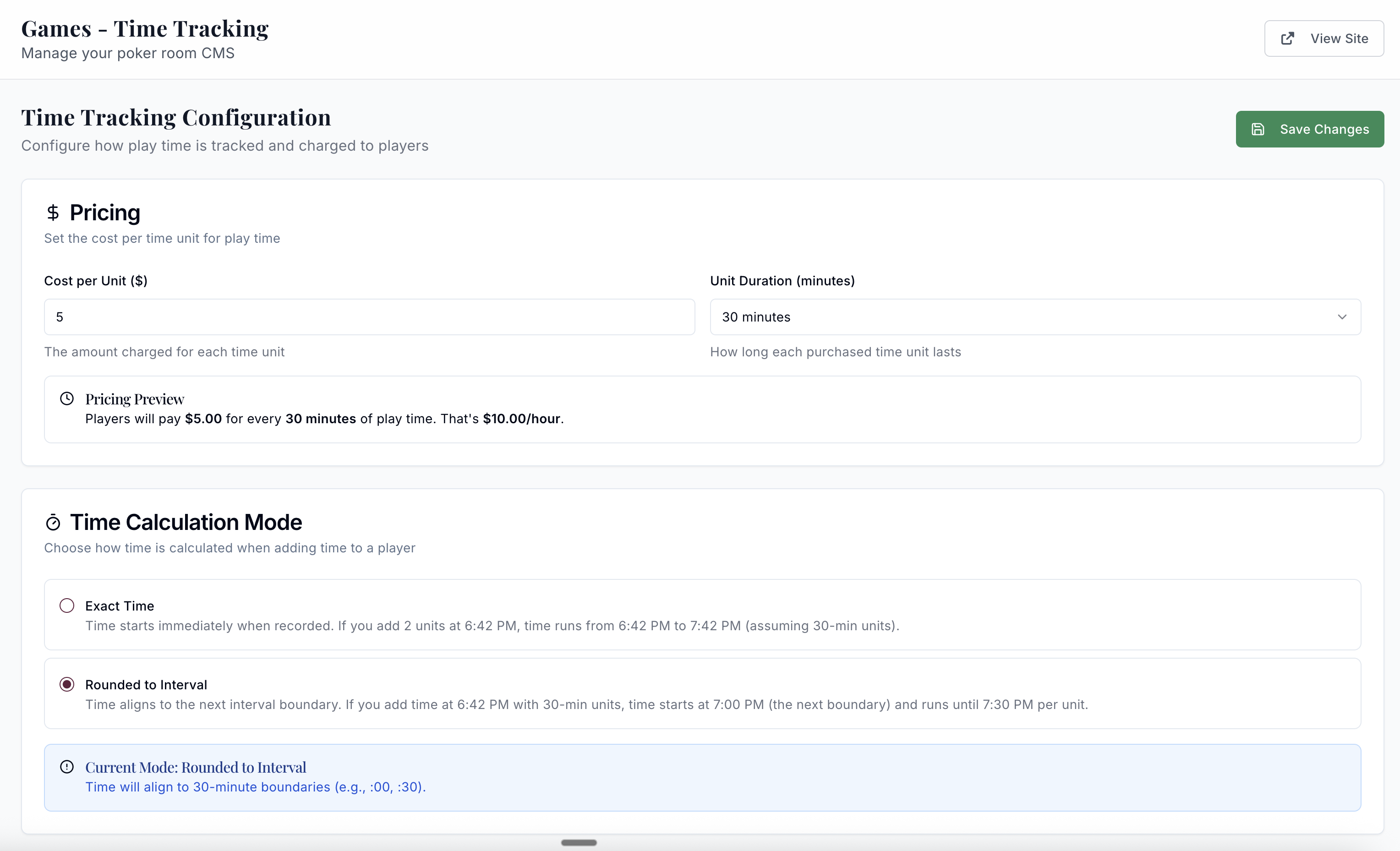 Set different seat fee rates for different games or time periods. Offer time packages or pay-as-you-go options. The system handles the math, so your staff can focus on running the room.